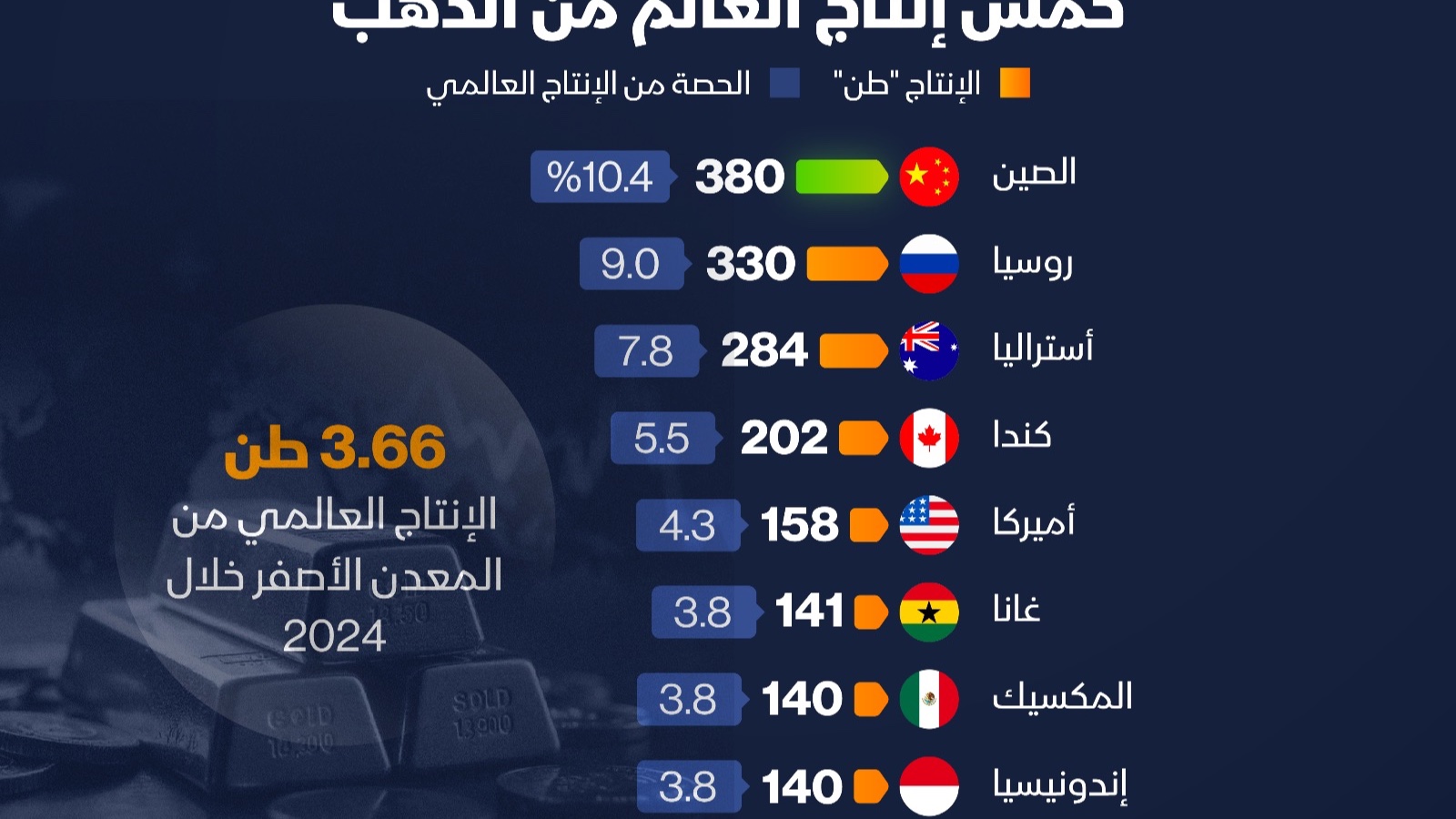 إنفوغراف: الصين وروسيا تهيمنان على إنتاج الذهب في 2024
